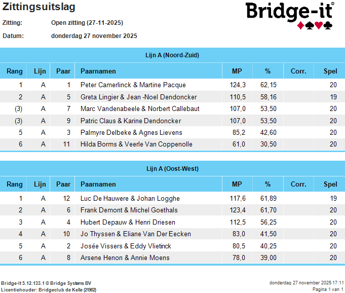 • HUISHOUDELIJK REGLEMENT “BRIDGECLUB DE KELLE“